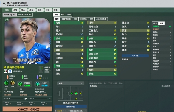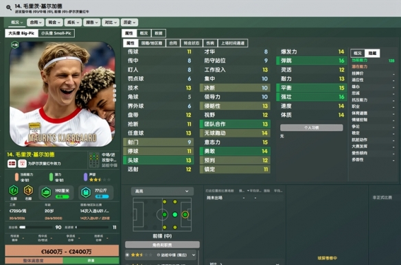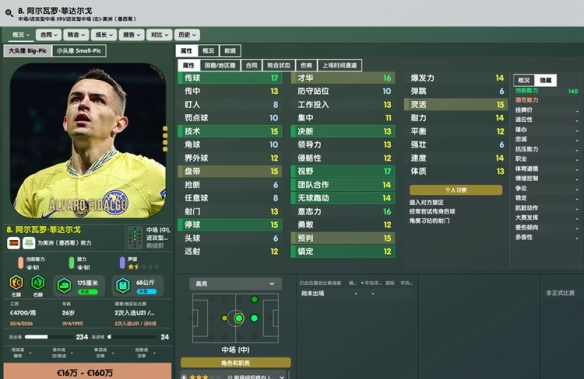 开档19岁的年轻中场,底子相当不错,各项属性几乎没有短板。虽然无法判断潜力高低,但就这底子有点像前俩代的阿尔玛达。