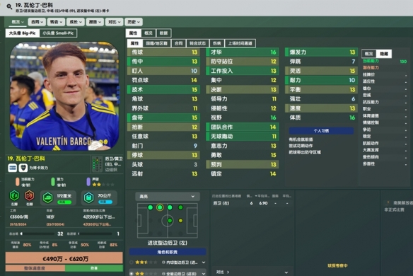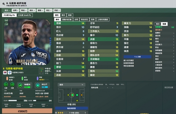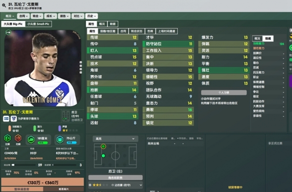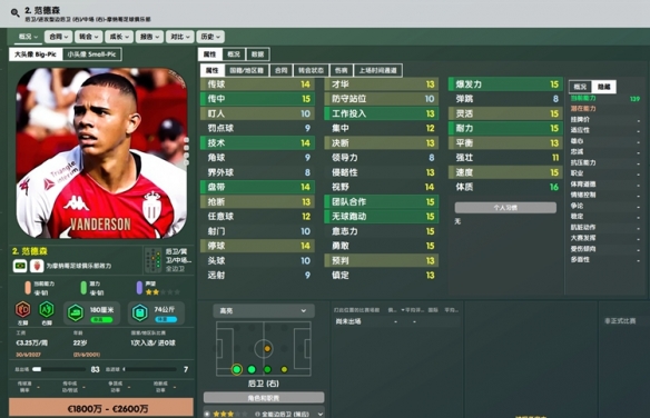 本作再次加强,性价比非常高的一名左边路万金油,适合任何战术。买到就是赚到,实在没随好,练满了5000W卖给曼联不是美滋滋。