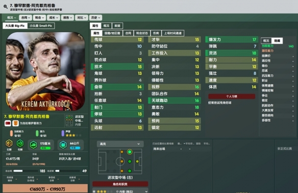 身体属性爆炸好的年轻小将,如果本作潜力够高,那么完全可以按照上述四名昂色前锋的模板来练,目测此人本代会很强。