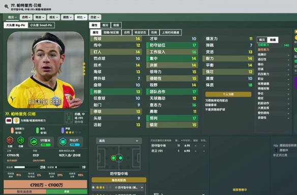 底子很不错的一名年轻后腰,本代身体属性迎来较大加强,稍作培养就是后防大将。