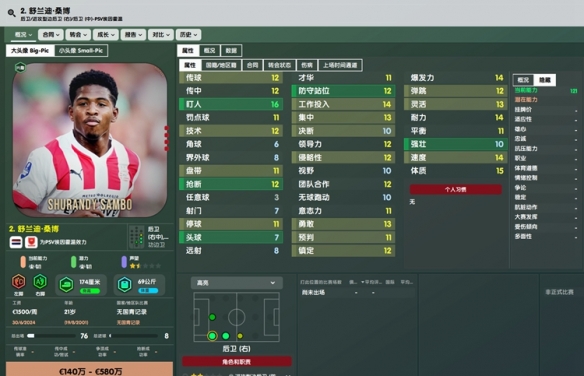 未来可期的一名年轻后防球员,非常契合本作新增的“边后腰”角色,不管是小球队买来当主力还是大球队买来代金都是非常推荐的人选。